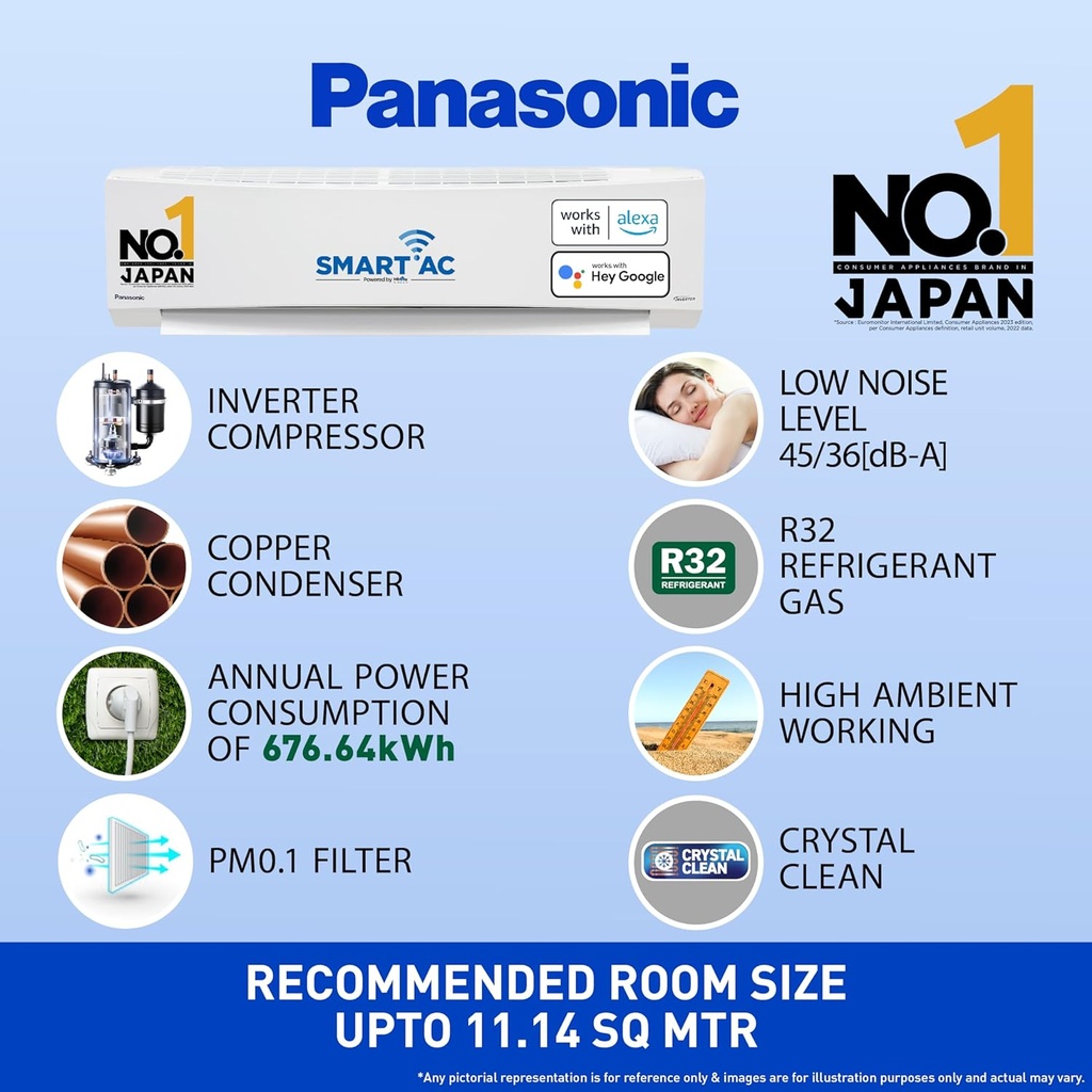 Panasonic 1 Ton 3 Star Wi-Fi Inverter Smart Split AC (Copper Condenser, 7 in 1 Convertible with True AI Mode, PM 0.1 Air Purification Filter, CS/CU-SU12ZKYWA, 2024 Model, White)